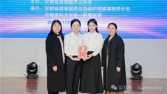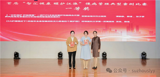 2025年10月24日,由安徽省健康服务业协会主办,安徽省医管健康产业集团协办,安徽省健康服务业协会护理健康服务分会和安徽医科大学第一附属医院共同承办的首届“智汇健康 颐护江淮”慢病管理典型案例决赛在合肥拉开帷幕,经过激烈角逐,我院消化内科谭静静、蔡倩、张子彦护理团队,在顾毅科护士长指导下,作品《分阶施护 肝脑兼营:一例TIPS术后反复肝性脑病合并营养风险高危患者的分阶段慢病管理典型案例》荣获大赛一等奖。