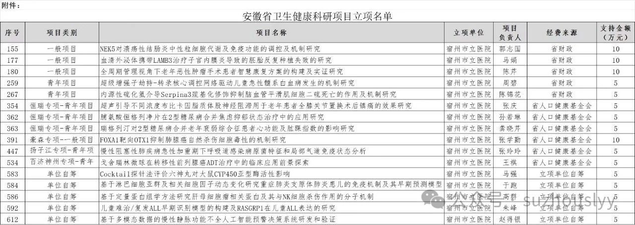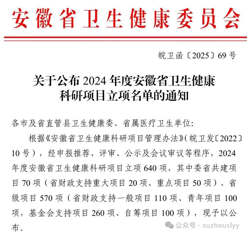 【喜报】我院获批2024年度安徽省卫生健康科研项目立项16项