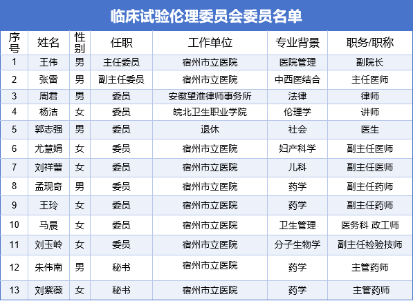 安徽省宿州市立医院临床试验伦理委员会成员名单