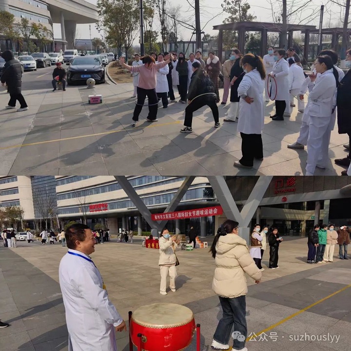 3月7日下午在北区三号门开展趣味运动会将节日气氛推向高潮。“蛇来运转”、“一圈到底”、“蒙眼敲鼓”及“螃蟹赛跑”4个比赛项目同时进行,由医护、行政、后勤人员组成的参赛队伍展开激烈角逐。游戏中临时产生的组队也能凭借身为白衣天使的默契配合夺得冠军,大家都纷纷表示难得脱下白大褂尽情运动,感觉找回了学生时代的活力,建议以后多举办此类的活动。