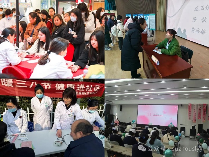 在我院整形外科、宿州学院、东关街道社区及吾悦广场开展的义诊活动中,南区内科党支部医护人员、整形外科、神经内科、妇科、皮肤科及中医科的10名女性专家组成义诊团队,为到场广大女性提供免费诊疗,服务1000多人次。宿州学院的学生及广大女性群众都纷纷表示:“义诊活动不仅为大家提供免费健康检查及科普,还学到了科学调理方法,这份节日礼物很贴心。”