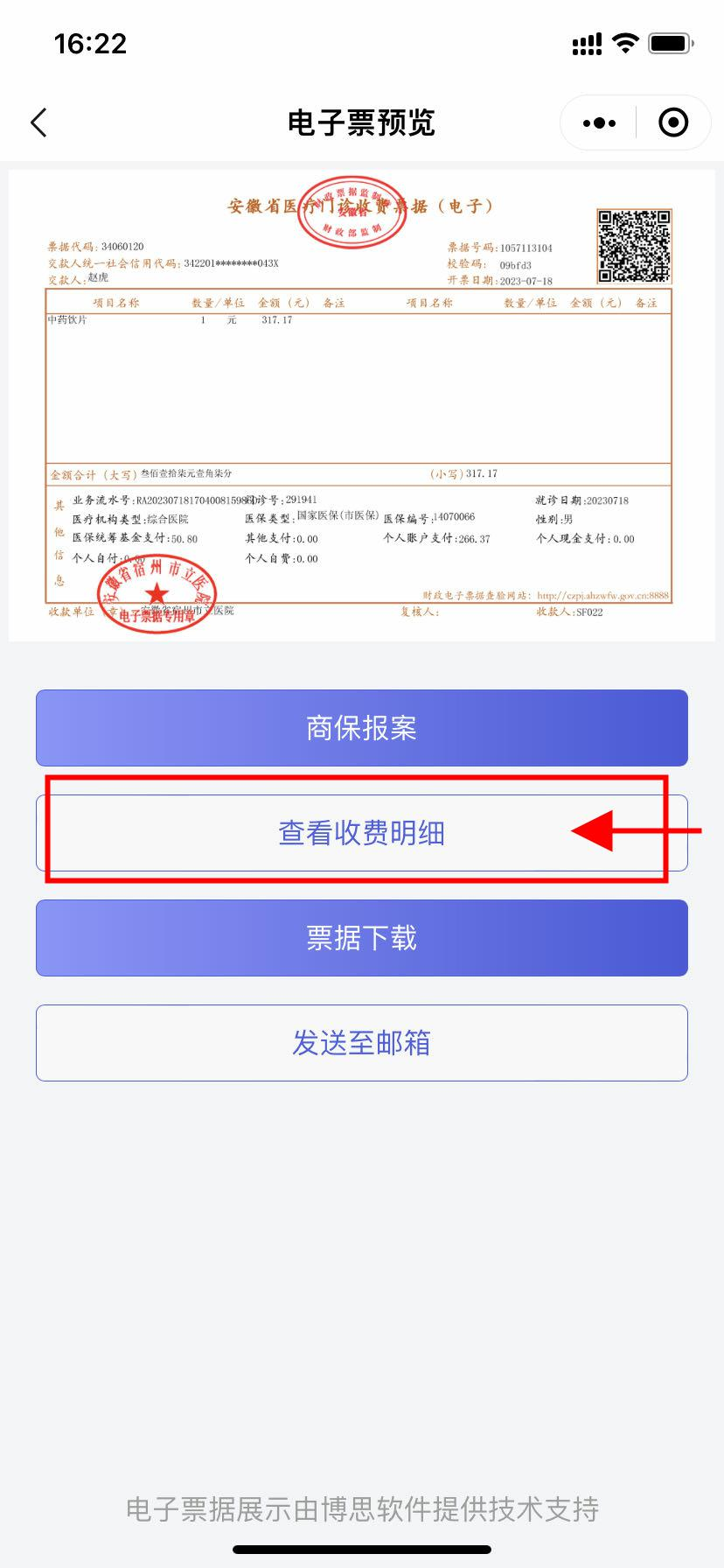 2、住院总清单:打开微信,搜索“宿州市立医院”小程序,在“门诊服务”项目下选择“电子票夹”,选择允许打开“电子票夹”小程序,实名认证登录后选择“我的票夹”,选择相应住院消费项,查看电子发票后点击“查看收费明细”。
