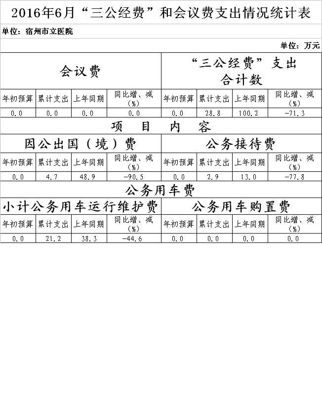 2016年6月“三公经费”和会议费支出情况统计表