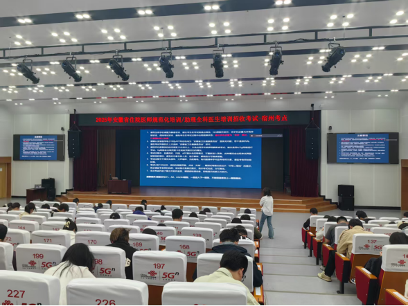 2025年5月11日,安徽省住院医师规范化培训及助理全科医生培训招收考试宿州考点考务工作在宿州市立医院北区后勤保障楼二楼学术报告厅圆满完成。作为宿州地区唯一考点,我院承接了住院医师规范化培训一志愿报考宿州市立医院和助理全科医生培训一志愿报考宿州市第一人民医院211名考生的考务任务,以严谨的部署、规范的管理和高效的服务,保障了考试的公平、公正与顺利进行。