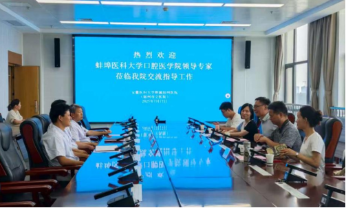 2025年7月17日,蚌埠医科大学口腔医学院党委书记孙文兵、党委副书记张云波、口腔医学院副院长姜丽娜等一行6人赴我院进行交流指导工作,我院副院长王伟及教育科、口腔科负责人陪同调研并参加座谈交流。