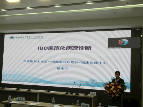下半场会议由宿州市立医院消化科曹杰主任、王选举主任及病理科封杨主任主持。安徽医科大学第一附属医院消化科胡静主任作《炎症性肠病内镜诊治新进展》报告;皖南医学院弋矶山医院消化科牛小平教授作《CD 的内镜下鉴别》报告;安徽医科大学第一附属医院病理科蔡永萍主任作《IBD 规范化病理诊断》报告;中国科技大学第一附属医院解丽教授作《中国克罗恩病最新指南解读》报告并提出患者的人文关怀也同等重要;宿州学院彭磊教授作《肠道微生态研究进展》报告。此外,我院消化科郭志国主任、许芳副主任,影像科姜博主任及外科梅天明主任分别就肠内营养,炎症性肠病影像学研究进展及炎症性肠病诊断与鉴别诊断,外科进展等进行了相关讲座。报告精彩纷呈,来自不同学科的专家教授们都从各自的专业角度对炎症性肠病提出了最新见解及个人体会,增加了会议的炎症性肠病知识深度和厚度。