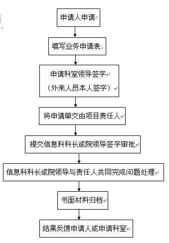 一、申请科室和外来人员首先填写信息业务申请单,申请科室领导签字(外来人员本人签字并登记相关信息)