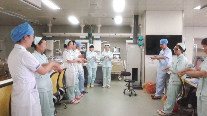 六号代表队的马晴晴组的护理人员均为科室的特殊人群,有5名哺乳期护士和1名孕晚期护士,尤其是黄肖护士为了配合科室活动的开展,数次偷偷地到更衣室挤去乳汁后又悄悄地去排练、马晴晴等也以院为家,下班后不顾身体的劳累和孩子的幼小,积极的进行活动的设计方案…….她们用实际行动再次奏响了ICU医务人员爱的奉献之乐章。而马晴晴护士的汇报则是让人感到新颖别致,首先她播放了对科室的探视的3名家属、低年资医生、新进科的实习护士和保洁员等进行了手卫生知识的访谈视频,通过调查了解手卫生管理的不足之处,加强了探视人员的手卫生知识宣教。汇报结束时提出了手卫生的小贴士:具体的洗手时间是2遍生日歌。大家在轻松愉快的气氛中进一步强化了手卫生的相关知识,学会了如何正确洗手。