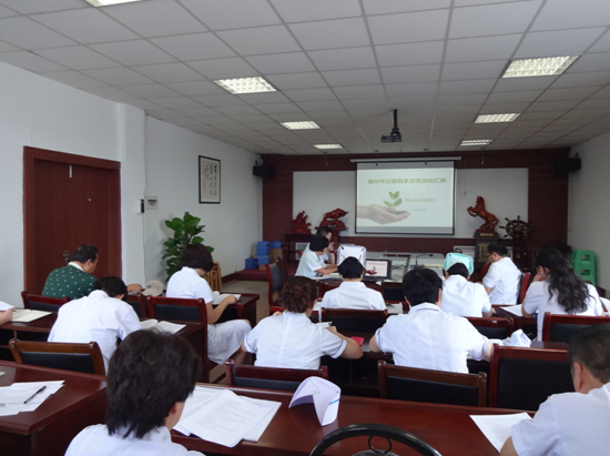 钟院长回顾点评了2014年度上半年医院感染管理工作的进展情况,重点针对我院按照安徽省卫计委“加强手卫生管理方案”要求,进行阶段性总结;医院感染管理科田真副科长汇报我院手卫生管理活动情况:我院自