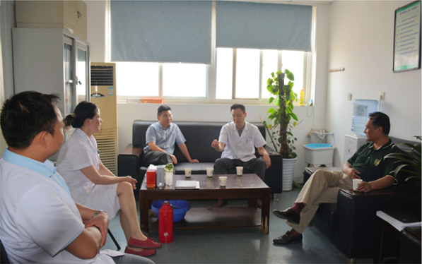 上图:201472日下午,徐州医学院附属医院骨科主任郭开今(右一)与宿州市立医院医务科主任张勇(右二)亲切交谈。