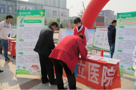 活动当天,我院外联办和后勤工作人员以设立咨询台、陈列宣传展板、展示除“四害”药械、发放宣传单、宣传画和问卷调查等形式,紧紧围绕“全民参与爱国卫生 共建共享健康安徽”的主题,向广大市民宣传国务院《关于进一步加强新时期爱国卫生工作的意见》、《安徽省爱国卫生工作条例》和《安徽省防控病媒生物管理办法》、除四害方法、春夏季传染病防控知识等,增强广大市民依法开展爱国卫生工作的意识与能力,积极营造全民参与的良好社会氛围,此次活动受到宿州市相关领导的一致好评。