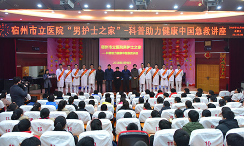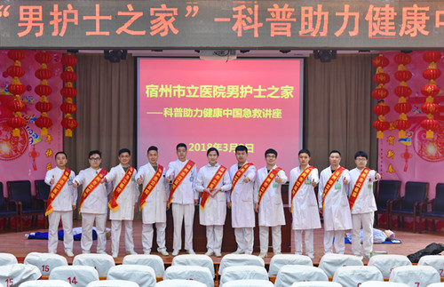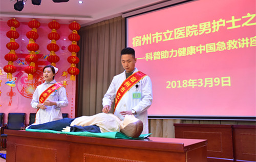 2018年3月9日,我院护理部组织开展“男护士之家”走进宿州第十一中学开展应急救护公益知识讲座。