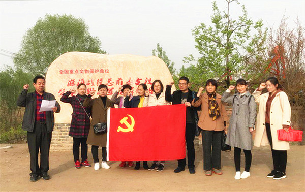 带着激动的心情,大家来到萧县蔡洼淮海战役总前委旧址。通过瞻仰学习,大家了解了蔡洼是淮海战役华东野战军指挥部驻地,是淮海战役总前委唯一的一次全委会议旧址,这次会议是取得淮海战役胜利,继而渡江南下,解放全中国的一次决定性胜利,具有重要的历史意义。在总前委旧址前,在鲜红的党旗下,前任支部书记呼吸科主任王继灵带领大家庄严宣誓,重温入党誓词。