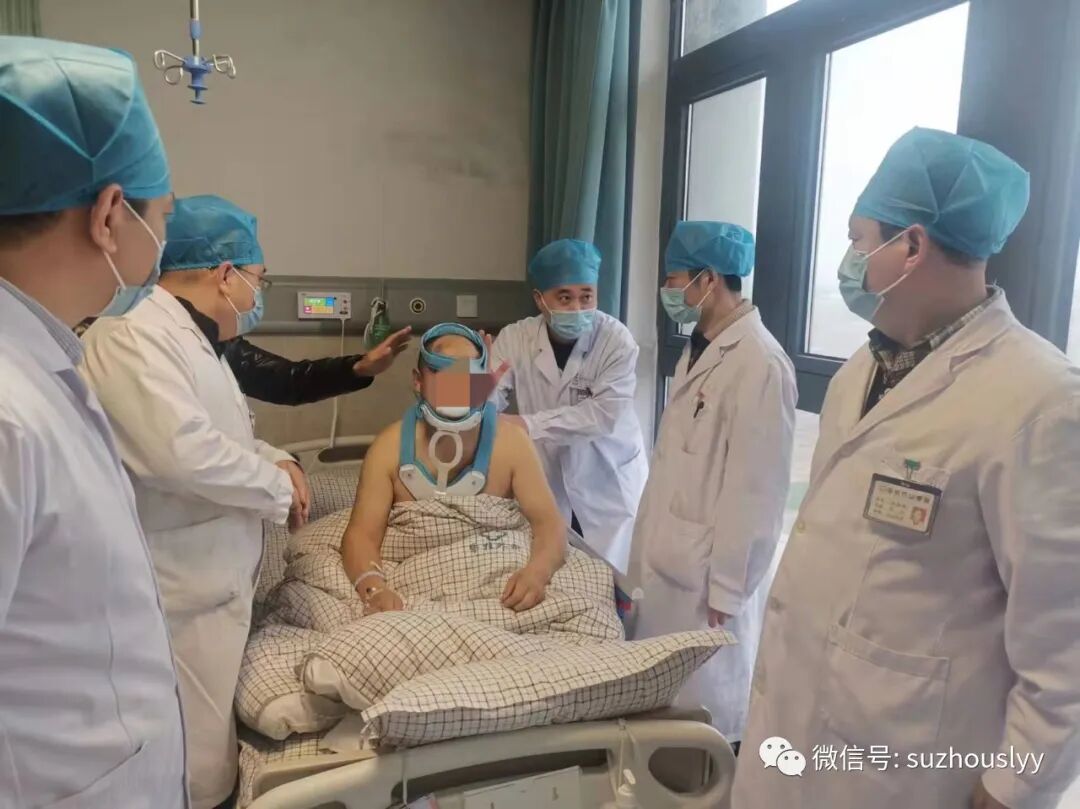 我院脊柱外科主任医师张栋博士,副主任医师凌嵘、时强,主治医师于振及脊柱外科团队认真开展病例讨论、制定治疗计划、评估手术风险等,并制定相关治疗细则及应急预案。与家属沟通后,决定尽快进行手术。手术历时5小时顺利完成,患者术后转入重症监护室进一步支持治疗,次日各项生命体征平稳,转入普通病房继续康复治疗。