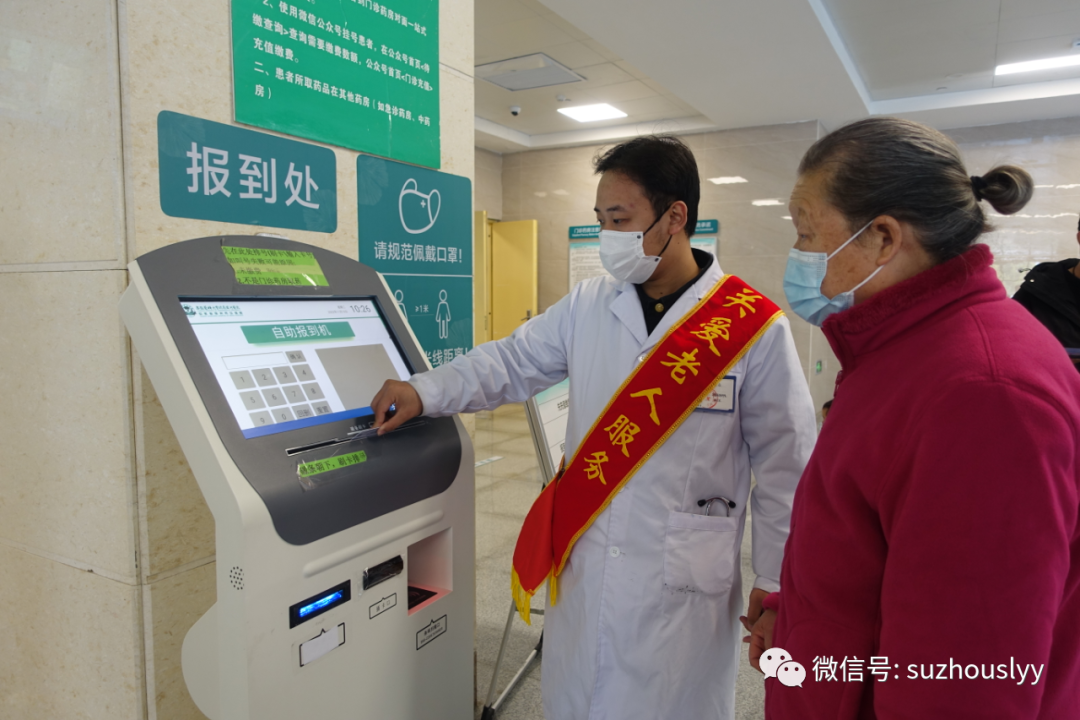 安排专职人员提供导医服务:自启动省级老年友善医疗机构创建工作以来,在门诊挂号处设置了“老年人专用窗口”,专门为老年人提供挂号等服务;组织专职人员在自助挂号区协助老年人挂号、缴费,为老年人预留号源等;在急诊报告打印区,组织专职人员协助老年人打印检查检验报告;在门诊药房增加志愿者,协助老年人及行动不便的患者进行报到、充值、取药等;在门诊导诊台设置“老年人综合服务台”,为老年人提供咨询、指引、分诊、代邮代寄、助老器具(老花镜、白板、笔、纸、助听器等)暖心服务,并严格落实首问首接负责制,确保老年人顺利就医。在门急诊各区域,随处可见佩戴“关爱老人服务”绶带的志愿者身影,为老年患者提供贴心服务,尊老、爱老、助老氛围浓厚。