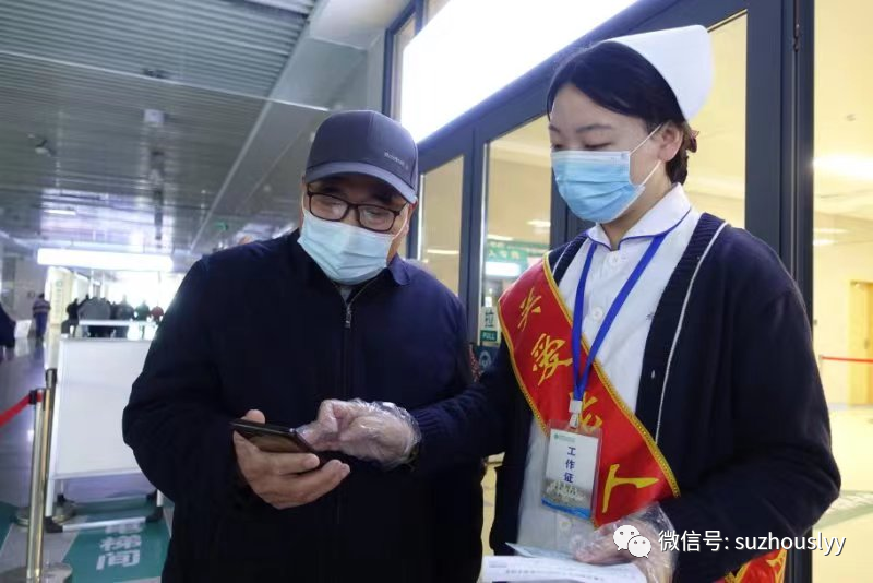 医院入口处设置“老年人快速预检通道”:组织志愿者协助老年人扫码、核酸查验查询,对无手机的老年患者进行信息登记、流调、抗原检测指导等。