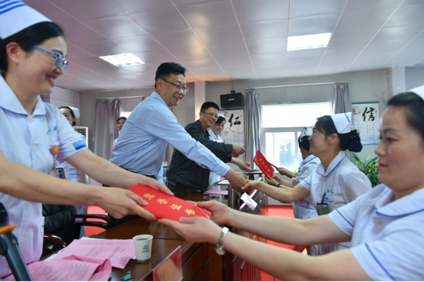 会上,吴院长肯定了近年来全院护理工作取得的进步和成绩,赞扬了我院护理工作者团结一致、恪尽职守、无私奉献,把广大人民群众的身体健康和生命安危放在第一位,表现出了良好的职业道德和崇高的思想品质;以严谨的态度、精湛的技术服务患者,以满腔热情、勤奋工作奉献社会,充分发挥了护理专业在预防疾病、维护生命、减轻痛苦和促进健康等方面的重要作用。“患者感激你们!社会信赖你们!医院感谢你们!”深深地鞠躬表达了的吴院长的感激之情,并鼓励大家不忘初心,砥砺前行,再创新佳绩,再展新风采!