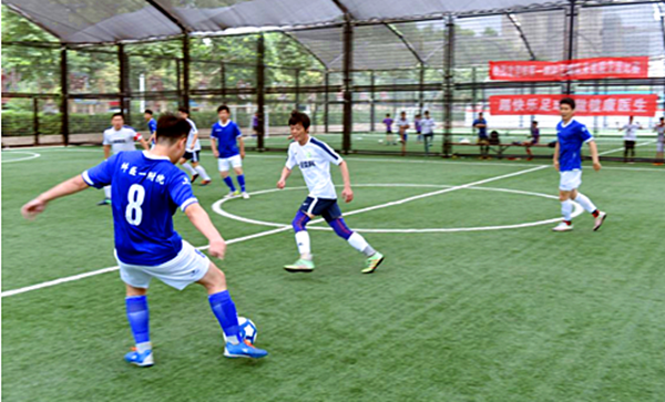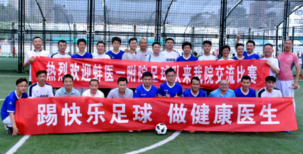 为了让广大职工共享医院改革发展成果,丰富职工业余文化生活,增强广大职工凝聚力,营造和谐向上的医院文化氛围, 6月9日下午我院工会与蚌医一附院工会对接组织开展了一场两院足球友谊赛。