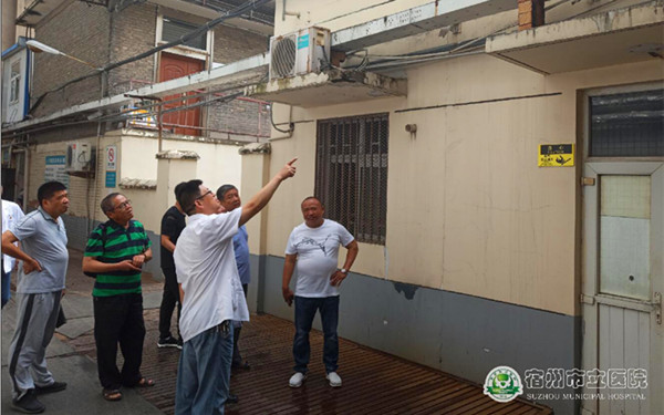 2018年6月是第十七个“安全生产月”, 为了确保医院安全生产形势持续稳定,贯彻落实消防安全责任,坚决遏制安全事故发生。院领导高度重视生产安全工作,自6月初开始要求各院区、各部门进行自查,6月27日上午,副院长王伟带队,由总务科科长刘杰,副科长柏宁云、保卫科科长陆斌等相关部门参与,对我院安全生产开展全面督查。