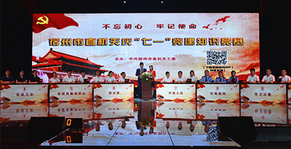 为纪念中国共产党成立97周年,进一步夯实基层党建工作,检验学习宣传贯彻习近平新时代中国特色社会主义思想和党的十九大精神成果,传播新时代力量,宣扬新时代精神。6月27日上午,市直机关工委在宿州电视台组织举办了“市直机关2018年庆七一党建知识竞赛”决赛。市委副书记余向东,市人大常委会副主任张忆秋,市政协副主席马红钟等观看比赛并为获奖代表队颁奖。