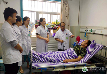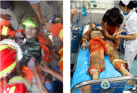8月8日上午120急救中心救护车载着一名为救援他人而身陷生命危险的消防官兵,我院急诊科接诊后值班的医护人员马上进行抢救,并迅速通知医院领导和医务科,有关科室主任和相关专家,即刻赶到急诊科,开通绿色通道,启动应急预案,在科主任程仁力带领下,展开了一场生死救护。