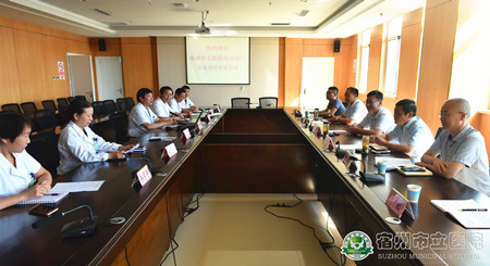座谈会紧紧围绕“宿州市医联体工作的现状分析和对策”进行了深入的交流。泗县人民医院院长张宝玉、院长助理陶安对泗县人民医院各项工作进行了介绍,对我院医联体对口帮扶表示了感谢,积极评价了我院在医联体对口帮扶中发挥引领作用。希望在双方的共同努力下,建立起公立医院之间的良好关系,积极开展灵活多样的支援方式,不断丰富帮扶内容,在帮助医院提高基本医疗业务同时,重点帮助开展新的医疗技术服务项目,拓展诊疗范围,对病人的双向转诊开通便捷、快速的绿色通道,造福一方,为健康宿州做出新的贡献。