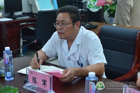 副院长陈军对首届门诊质控中心工作会议在我院成功举办表示祝贺,总结肯定了我院门诊部的工作,并强调门诊质量控制对门诊精细化管理重大意义,门诊工作在改善医疗服务、提升患者就医感受中发挥着举足轻重的作用,作为医疗服务窗口单位更要进一步加强医疗服务行动计划的重要内容,全市各医疗门诊部都要高度重视门诊管理工作,要探索门诊管理新机制、做出工作新亮点,为创建平安医院、创建美好宿州,展示医疗服务良好的窗口形象。