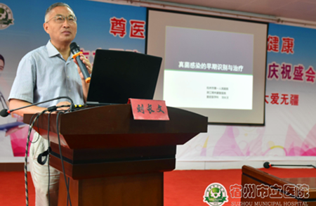 此次培训由刘长文教授讲授《真菌感染的早期识别与治疗》;蚌埠医学院第一附属医院副院长、重症医学科学科带头人、江淮名医、硕士研究生导师何先弟教授为大家讲授《侵袭性真菌感染到底如何治疗》。安徽医科大学第一附属医院重症医学科主任,硕士生、博士生导师邵敏副教授讲授《ICU真菌感染的特点及诊治思路》;安徽医科大学第二附属医院重症医学科主任、博士生导师孙韵副教授讲授《危重病人抗真菌规范化治疗》;蚌埠医学院第一附属医院重症医学科主任、硕士研究生导师汪华学副教授《抗真菌药物治疗失败后的应对措施》。精彩的讲座得到在场同仁们的一致好评。