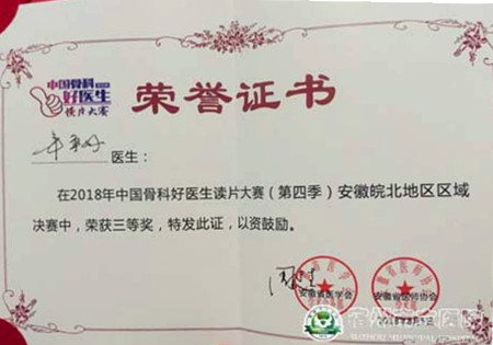我院骨一科年争好荣获“中国骨科好医生读片大赛第四季-皖北赛区””三等奖