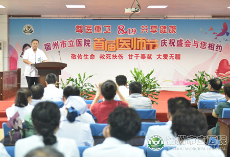 为弘扬“敬佑生命,救死扶伤,甘于奉献,大爱无疆”的崇高精神,树立全社会“尊医重卫”的思想,构筑融洽和谐的医患关系,8月17日下午,在首个“中国医师节”到来之际,我院隆重召开8.19首届“中国医师节”庆典盛会。院长吴超,纪委书记张健,副院长王伟出席大会,副院长陈军主持会议。全院干部及医师共300余人参加盛会。