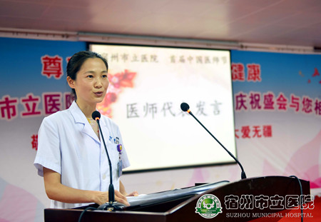 院长吴超致辞中强调,在全民健康意识不断增强、医疗技术和水平不断进步的背景下,设立“中国医师节”,体现了党和国家对1100多万卫生与健康工作者的关怀与肯定,全体医师要以“敬佑生命、救死扶伤、甘于奉献、大爱无疆”的崇高精神为旗帜,增强职业荣誉感,积极工作,实现自身价值。多年来,我院医务工作者全心全意为人民健康服务,以实际行动生动诠释了“敬佑生命、救死扶伤、甘于奉献、大爱无疆”的职业精神,是当之无愧的健康卫士。