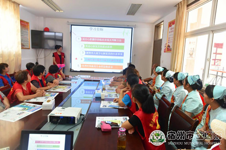 8月30日下午,我院急诊科急救沙龙讲座小组应邀走进宿州市环宇社区,开展“心肺复苏急救知识”培训,现场有60余名居民志愿者参加。