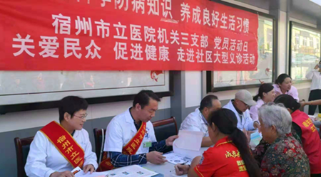 天高气爽,机关三支部党员走进一中社区活动,丰富了居民的健康防病知识,让他们在平时养成良好的习惯,共同关注健康,共同促进健康。同时机关三支部党用这样的方式很好的诠释了“党员”的含义,我们用贴心细致的服务态度和高效专业的医疗质量将优质的健康医疗送到普通老百姓中去,真正体现我党不忘初心,服务百姓,关爱居民健康的医者情怀,更好的为宿州文明创建与老百姓的健康贡献力量!
