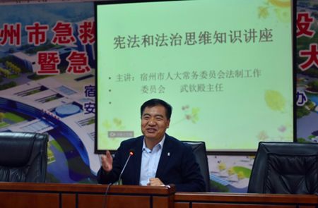 2018年10月16日下午3时,我院特邀市人大常务委员会委员、法制工作委员会主任武钦殿同志来院进行《宪法和法治思维知识专题》讲座,党委书记钟平主持,院领导班子成员、全院中层干部、党支部书记近200余人参加。