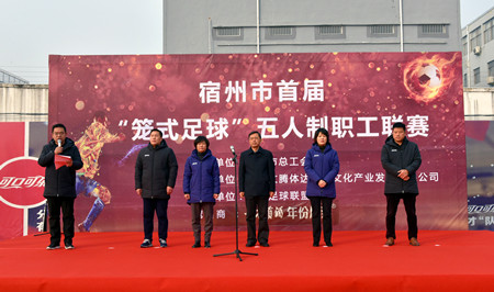 为庆祝改革开放40年,深入贯彻《全民健身条例》争创“全国文明城市”,丰富职工文化生活,11月25日上午,由宿州市总工会举办的宿州市首届职工笼式五人制足球比赛拉开帷幕,院长吴超、工会主席朱广斌率队参加比赛。