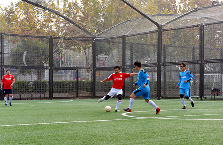 第一轮比赛在一声响亮的哨音中正式开始。我院代表队对站高新区代表队。赛场上,队员们激烈拼抢,尽情发挥球技,抢断、过人、射门、扑救……精彩场面一个接一个,大家你追我赶,奋力驰骋,大有“球场争锋,舍我其谁”之势。场上比赛进行得如火如荼,瞬间点燃了场旁观看助威的观众的热情,大家快乐地享受着40分钟的比赛时光,最终我院代表队以4:2战胜高新区代表队,吹响首战号角。